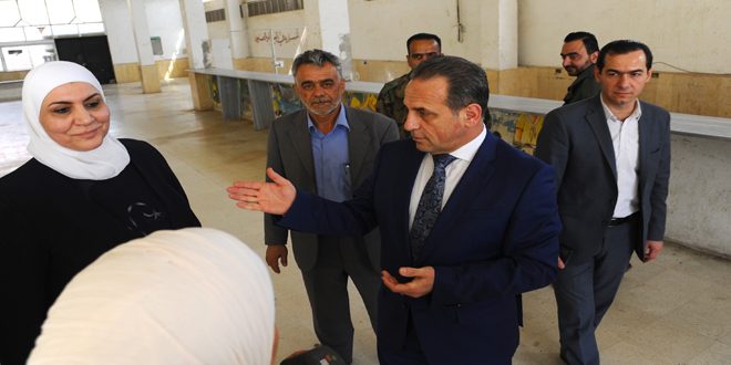 اطلع وزير الصحة الدكتور نزار يازجي ووزيرة الشؤون الاجتماعية والعمل ريمه قادري اليوم على جاهزية مركز الإقامة المؤقتة لاستقبال المدنيين لدى خروجهم من الغوطة عبر الممر الآمن في مخيم الوافدين بريف دمشق.
