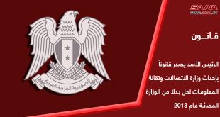 أصدر السيد الرئيس بشار الأسد اليوم القانون رقم 5 لعام 2018 القاضي بتمديد العمل بأحكام المرسوم التشريعي رقم 17 لعام 2017 لمدة سنة ميلادية بحيث يشمل الديون المترتبة بعد نفاذه.