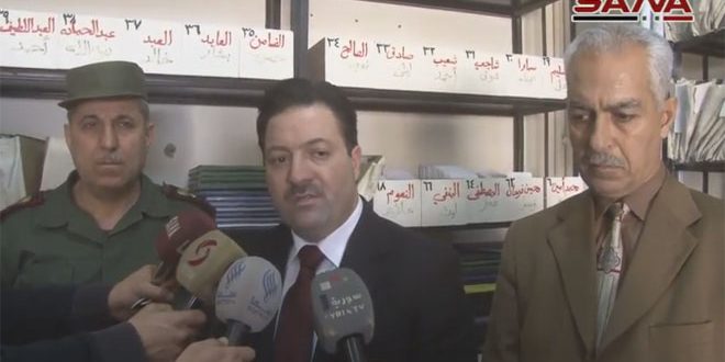 ودعا المحافظ إلى إيجاد حل إسعافي من خلال تأمين غرف مسبقة الصنع لتخفيف الضغط عن المكان والإسراع بتفعيل عمل المديرية ضمن المناطق والنواحي التي أعاد إليها الجيش العربي السوري الأمن والاستقرار للتخفيف من الأعباء عن المواطنين في الوصول الى مركز المحافظة للحصول على الوثائق.