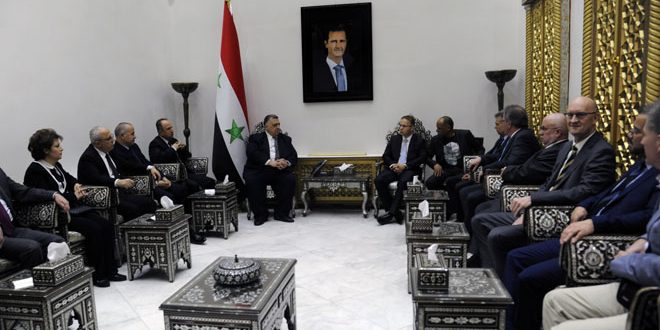 وشدد صباغ خلال لقائه اليوم وفداً برلمانياً ألمانياً برئاسة النائب الدكتور كريستيان بليكس على أن سورية ماضية في محاربة الإرهاب حتى اجتثاثه نهائياً وهي تعمل على تعزيز المصالحة الوطنية لتعود كما كانت آمنة قوية مبيناً أن التفاف الشعب السوري حول الجيش العربي السوري وقيادته هو الأساس في الصمود بمواجهة الإرهاب والفكر التكفيري.