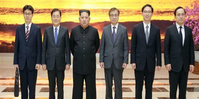 ونقلت وكالة الصحافة الفرنسية عن مستشار الأمن القومي في كوريا الجنوبية تشونغ اوي يونغ قوله اليوم بعد زيارة قام بها الى كوريا الديمقراطية ولقائه الرئيس كيم جونغ اون أن “بلاده وبيونغ يانغ اتفقتا على عقد قمة بين الجانبين في بلدة بانمونجوم الحدودية أواخر نيسان المقبل”.