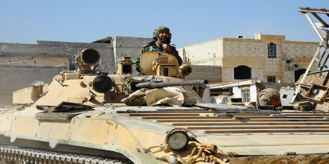 أحرزت وحدات الجيش العربي السوري تقدما جديدا في عملياتها ضد إرهابيي تنظيم جبهة النصرة والمجموعات المرتبطة به داخل بلدة بيت سوى ومحيط بلدة المحمدية في عمق الغوطة الشرقية بريف دمشق.