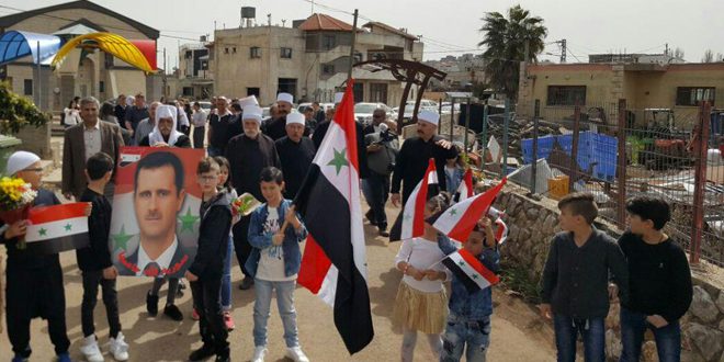 وأشار الأسير المحرر بشر سليمان المقت في كلمة له إلى أن أبناء الجولان يقفون صفا واحد خلف جيشهم البطل وقيادة السيد الرئيس بشار الأسد وإلى جانب شعبهم المعطاء الذي ضحى وصمد ولم يستسلم لاعتى حرب يتعرض لها وطنه.