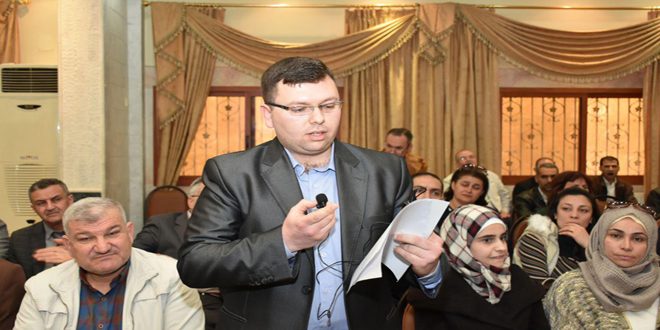 وأشار الدكتور علي الحمدان عضو مجلس نقابة حماة إلى تكريم النقابة عددا من الصيادلة المتميزين في أداء مهامهم الانسانية على مستوى المحافظة وعددا من جرحى الجيش العربي السوري في منطقتي مصياف والسلمية.