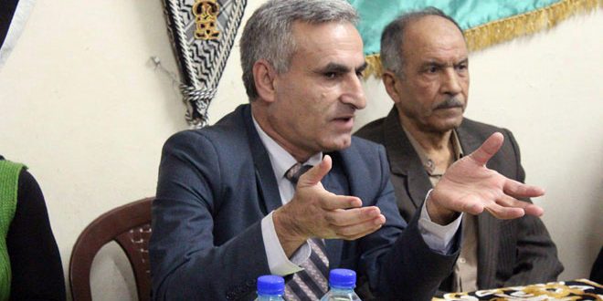 وأكد الخضر على الوقوف بوجه أي فكر لا يدعو للحفاظ على سلامة الأرض وترابها ولا يناصر الجيش العربي السوري وكفاحه البطولي مع ضرورة ترسيخ بطولات أدباء ومثقفين استشهدوا دفاعا عن الحقوق أمثال الشاعر السوري كمال خير بك والأديب الفلسطيني غسان كنفاني والفنان ناجي العلي.