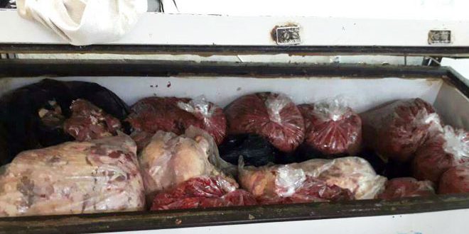 ضبطت عناصر مديرية التجارة الداخلية وحماية المستهلك بالتعاون مع إحدى الجهات المؤازرة في حي كرم الشامي بحمص محل قصابة يقوم بفرم اللحوم الحمراء والبيضاء مع بعضها.