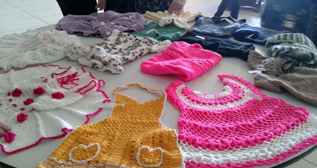 وتقول سمر حلاوة إحدى المتضررات من إرهاب المجموعات المسلحة في حلب: “شاركت بعشر قطع تنوعت ما بين ملابس الأطفال والحقائب وعدد من القطع المعاد تصنيعها بهدف التنويع قدر الإمكان في المشغولات” ونوهت بالحضور الكبير من قبل الزائرين منذ اليوم الأول لانطلاق المعرض.