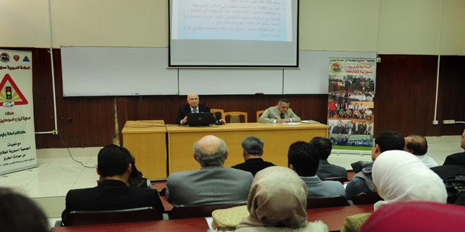 أقامت الجمعية السورية للوقاية من حوادث الطرق بالتعاون مع جامعة دمشق اليوم ندوة مرورية توعوية بعنوان “دور الشباب في رفع مستوى الوعي المروري على المدرج الاول للمعهد التقاني الهندسي في جامعة دمشق.