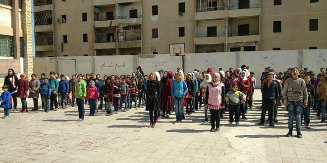 مراسل سانا زار عدد من المدارس التي دمرها الإرهاب وتمت إعادة تأهيلها وترميمها لتستقبل الطلاب وتواصل العملية التعليمية والتربوية حيث أكد محمد جهاد علو مدير مدرسة أبي خليل القباني للتعليم الأساسي من الحلقة الأولى في مساكن هنانو مواصلة درب العمل والمعرفة بكل إصرار.