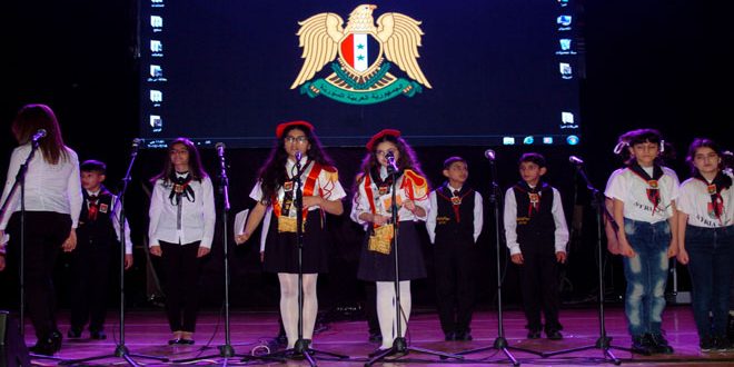 وتخللت الحفل فقرات فنية متنوعة لأطفال من منظمة طلائع البعث وفرقة الرواد فيها والكورال جسدت الوفاء للمعلم وتمجيد تضحيات أبطال الجيش العربي السوري في الحرب على الإرهاب بعناوين “بانوراما عيد المعلم” و”شموخ السنديان” و”بشرة خير”.