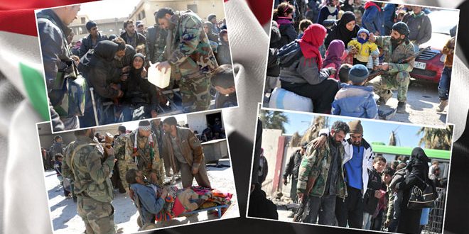 ولفت موفد سانا إلى أن وحدات الجيش بالتعاون مع الهلال الأحمر العربي السوري بدأت على الفور بتقديم التسهيلات اللازمة لهم تمهيدا لنقلهم بشكل آمن إلى مراكز إقامة مؤقتة مجهزة بكل المستلزمات الأساسية لاستعادة حياتهم الطبيعية بعيدا عن الترهيب الذي مورس عليهم منذ سنوات من قبل تنظيمات امتهنت الإرهاب والتنكيل والتكفير.