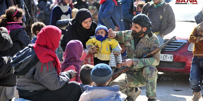 2018-03-16 استمرار تدفق حشود الناجين من ظلامية الإرهابيين في الغوطة عبر ممر حمورية 2018-03-16mohamad