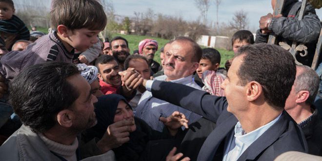 الرئيس الأسد يلتقي عددا من أهالي الغوطة الشرقية