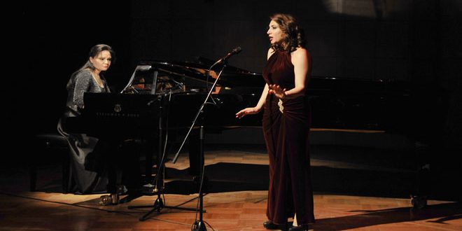 أغان وموسيقا تعبق بالحب والجمال اتسمت بها أمسية الغناء الأوبرالي “نسمات فرنسية” التي أحيتها مساء اليوم السوبرانو غادة حرب بمرافقة عازفة البيانو جمان عمران في القاعة المتعددة الاستعمالات بدار الأسد للثقافة والفنون.
