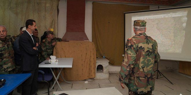الرئيس الأسد يلتقي عددا من ضباط الجيش في مقر إحدى تشكيلاته بالغوطة الشرقية