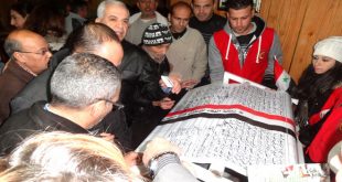 على مدار أربعة أيام وثق العرض المسرحي “حكاية الرسالة” على خشبة مسرح الحمراء بدمشق مسيرة تجمع شباب الوحدة الوطنية لتوقيع أطول رسالة حب ووفاء من الشعب السوري إلى السيد الرئيس بشار الأسد والتي وصل طولها إلى 10 آلاف و700 متر.