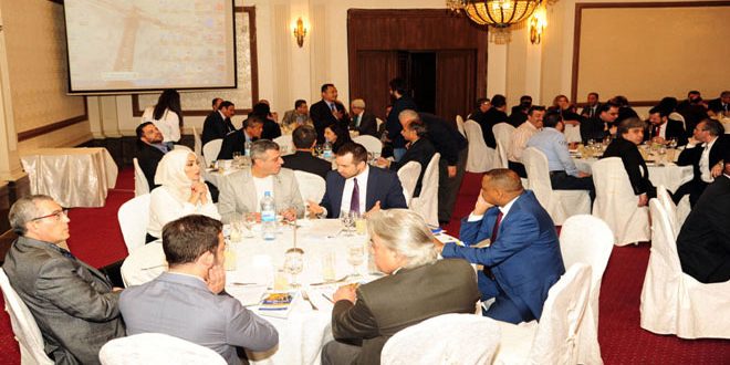 حضر الحفل وزير الاقتصاد والتجارة الخارجية الدكتور سامر خليل ورئيس هيئة التخطيط والتعاون الدولي الدكتور عماد صابوني ومعاون وزير الأشغال العامة والإسكان محمد سيف الدين وعدد من الدبلوماسيين المعتمدين بدمشق ورئيس اتحاد غرف التجارة السورية ورئيس غرفة صناعة دمشق وريفها وممثلون عن وزارتي الكهرباء والنقل ومحافظة دمشق.