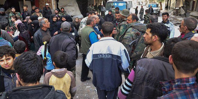 الجيش يواصل تأمين أهالي سقبا في منازلهم بعد تحريرها من الإرهاب