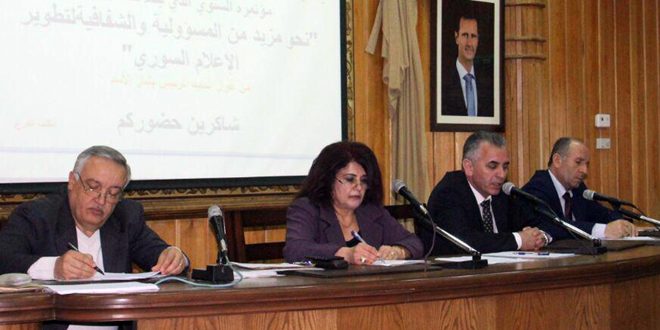 ركزت مداخلات المشاركين في المؤتمر السنوي لفرع اتحاد الصحفيين بطرطوس على تطوير أدوات ومستلزمات العمل الصحفي والاهتمام بتدريب وتأهيل الصحفيين ووضع أسس شاملة له وتمكين الصحفيين من الحصول على المعلومة بيسر وسهولة.