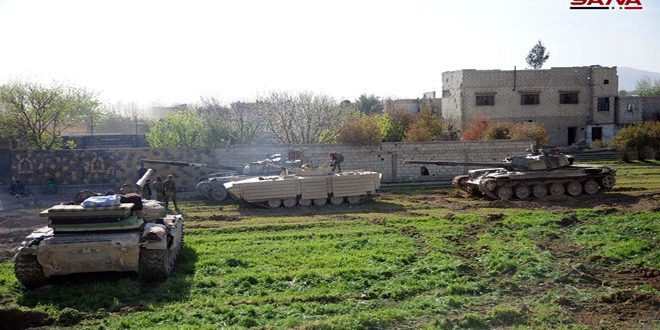 الجيش يسيطر على عدد من مزارع عين ترما ويواصل تأمين المدنيين داخل منازلهم في سقبا وكفر بطنا بالغوطة الشرقية