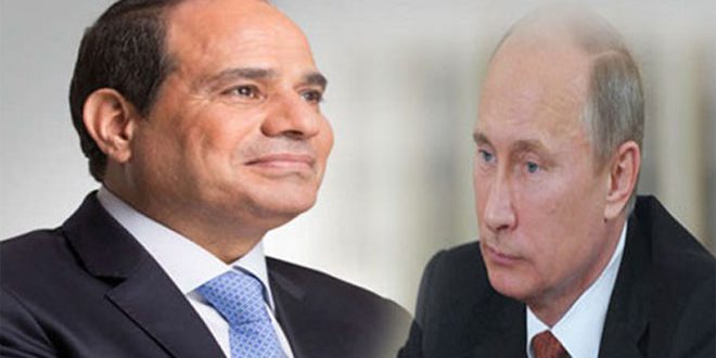 بحث الرئيسان الروسي فلاديمير بوتين والمصري عبد الفتاح السيسي في اتصال هاتفي اليوم مسائل التسوية السياسية للأزمة في سورية إضافة إلى مواصلة تطوير التعاون بين البلدين.