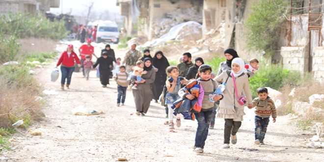 قامت وحدات من الجيش العربي السوري اليوم بتأمين خروج آلاف المدنيين المحتجزين لدى التنظيمات الإرهابية في القطاع الشمالي من الغوطة الشرقية بريف دمشق عبر الممر الآمن المؤدي إلى مخيم الوافدين.