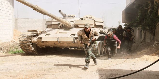 وأوضح أن وحدات الجيش تقوم بتمشيط منطقة وادي عين ترما لتطهيرها من مخلفات التنظيمات الإرهابية لتثبيت نقاط جديدة تكون منطلقاً لعمليات جديدة نحو تحرير باقي المناطق التي تنتشر فيها التنظيمات الإرهابية في حزة وزملكا وعربين وأجزاء من حي جوبر.