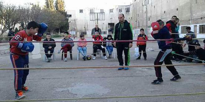 بمناسبة ذكرى ثورة الثامن من آذار أقام نادي العمال الرياضي بحمص لقاء وديا في الملاكمة ضم 75 لاعبا من أندية العمال والوثبة والشرطة ومركز الشريف.