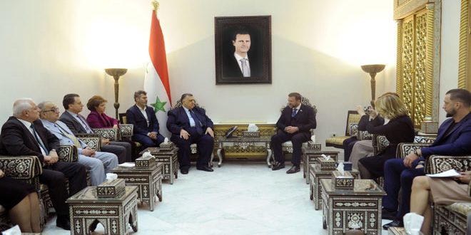 بحث رئيس مجلس الشعب حموده صباغ مع وفد برلماني من جمهورية روسيا الاتحادية برئاسة ديميتري سابلين رئيس جمعية الصداقة الروسية السورية في مجلس الدوما الروسي علاقات التعاون الثنائية بين البلدين .