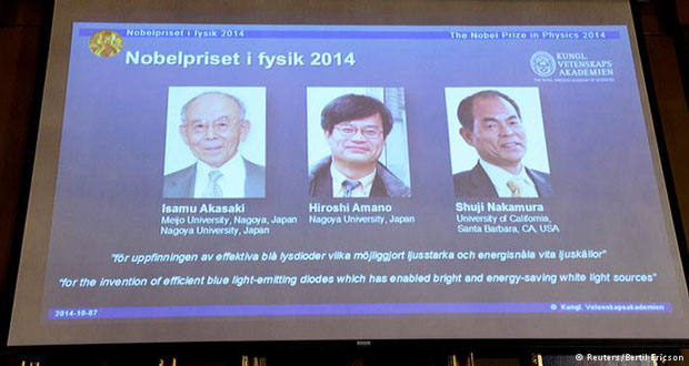منحت جائزة نوبل للفيزياء للعام 2014 إلى اليابانيين ايسامو اكاساكي وهيروشي امانو والأمريكي من أصل ياباني شوجي ناكامورا وهم مخترعو الصمام الثنائي الباعث للضوء أو ما يعرف بتقنية ليد للإنارة التي تسمح باقتصاد الطاقة.