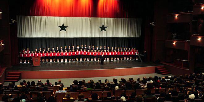 وجاء العرض الغنائي الذي قدمه كورال مدارس أبناء وبنات الشهداء حافلا بأغان وطنية منها “يا أرض سورية اسلمي وانت الاساس وخضرة يا بلادي” إضافة لأغان للأخوين رحباني تفاعل معها جمهور مسرح دار الأوبرا بالغناء والتصفيق.