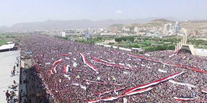 تظاهر عشرات آلاف اليمنيين اليوم في العاصمة صنعاء تنديدا بالعدوان الذي يشنه النظام السعودي على بلادهم.