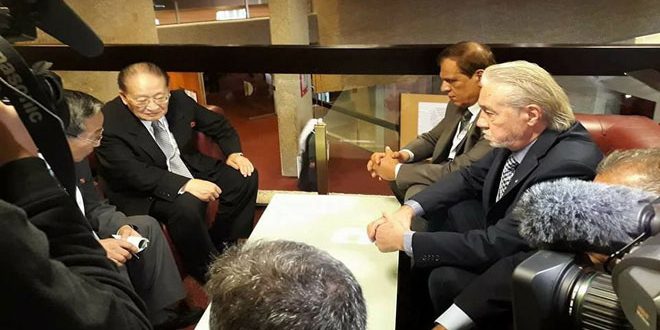 بحث نائب رئيس مجلس الشعب نجدت أنزور رئيس الوفد السوري المشارك في أعمال الجمعية العامة الـ 138 للاتحاد البرلماني الدولي مع رئيس وفد مجلس الشعب الاعلى في جمهورية كوريا الديمقراطية الشعبية ري جونغ هيوك سبل تعزيز علاقات التعاون البرلمانية بين البلدين الصديقين بما يخدم قضاياهما الثنائية ويسهم في توطيد أواصر الصداقة.