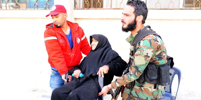 ولفت موفد سانا إلى أن من بين المدنيين الخارجين 8 حالات إنسانية تم نقلهم بواسطة سيارات الإسعاف إلى المشافي في دمشق لمتابعة وضعهم الصحي.