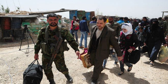 مصدر عسكري : خروج أكثر من 128 ألف من المدنيين المحتجزين من قبل التنظيمات الإرهابية في الغوطة الشرقية حتى الآن