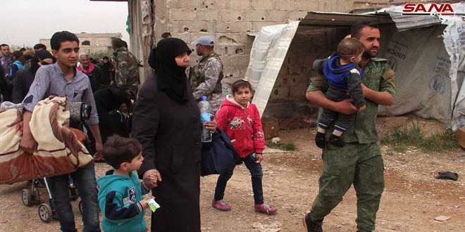 الجيش يؤمن خروج مئات المدنيين المحتجزين لدى التنظيمات الإرهابية في منطقة دوما عبر ممر مخيم الوافدين