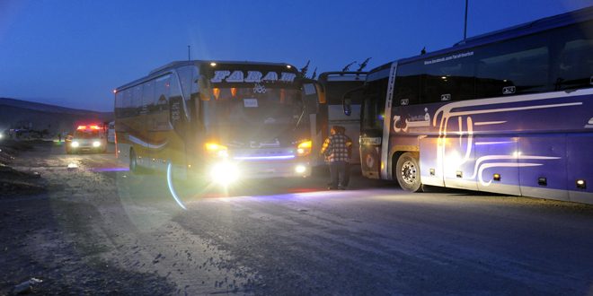 في إطار عملية إخلاء الغوطة الشرقية بريف دمشق من الإرهاب غادرت مساء اليوم دفعة جديدة من الحافلات إلى إدلب تقل على متنها مئات الإرهابيين وعائلاتهم من بلدات عربين وزملكا وجوبر وعين ترما.