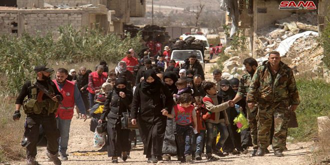 الجيش يؤمن خروج مئات المدنيين المحتجزين لدى الإرهابيين في دوما عبر ممر الوافدين