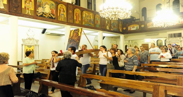 أقيمت في كنيسة سيدة فاطمة للسريان الكاثوليك بالقصور في دمشق اليوم صلاة لأجل السلام في سورية تحت عنوان “كنيسة دمشق الصائمة والمصلية لأجل سلام سورية”.