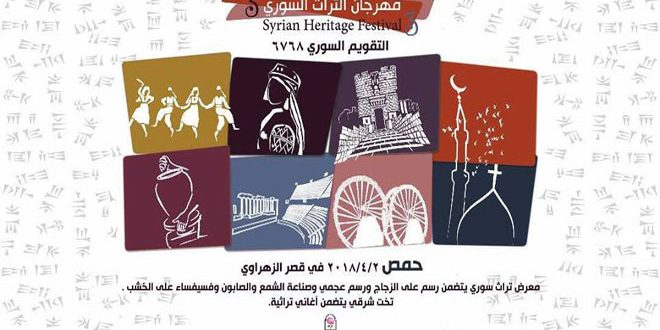 أعلنت مديرية سياحة طرطوس عن انطلاق فعاليات مهرجان التراث السوري التقويم السوري يوم الاثنين الثاني من نيسان المقبل لمدة أربعة أيام متتالية في صالة المعارض بالمدينة.