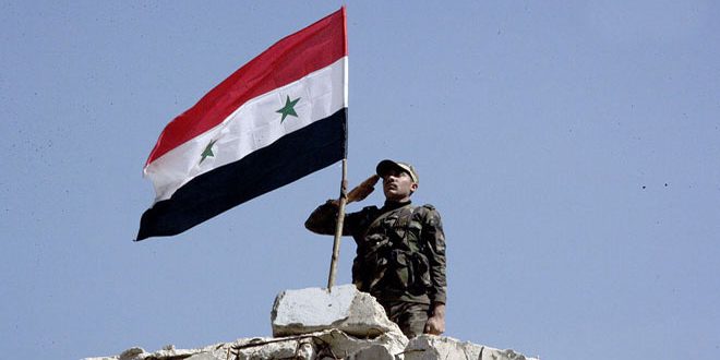 يقول ضابط في الجيش وقد بدت على ملامحه حالة العنفوان معلقا نظره على طيات العلم التي تذهب وتجيء.. “بعد سنين من التضحيات بدماء رجال أبطال كانوا أوفياء لوطنهم نرفع العلم ونهديه الى كل شهيد وجريح.. سنكمل طريقهم ونرفع العلم على كل ذرة تراب من بلدنا سورية الغالية”.