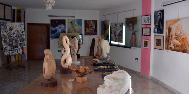 من داخل حي الرمل الشمالي الشعبي في اللاذقية حيث مرسم الفنان التشكيلي سموقان التأم عقد 53 فنانا تشكيليا ونحاتا في معرض فني أراده الفنان محمد أسعد “سموقان” أن يبعث من خلاله رسائل “سورية المحبة”.