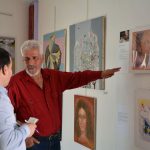 وبلوحة بورتريه قدم الفنان تيسير رمضان رؤية مختلفة للجمال ولجسد المرأة من حيث الاستطالة عززها بألوان حارة للإيحاء بالجمال أكثر بينما اختصر بعض القيم اللونية بالورود مشيرا في تصريح لـ سانا إلى “ضرورة تشجيع مثل هذه التجربة بإقامة معارض في مراسم الفنانين”.