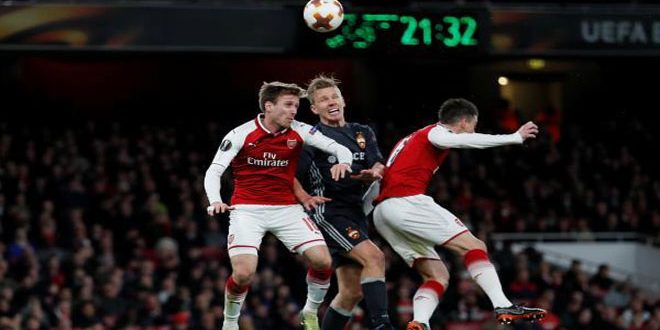 تغلب فريق أرسنال الإنكليزي أمس على ضيفه سيسكا موسكو الروسي بأربعة أهداف مقابل هدف وحيد في ذهاب ربع نهائي بطولة الدوري الأوروبي.