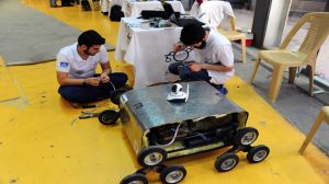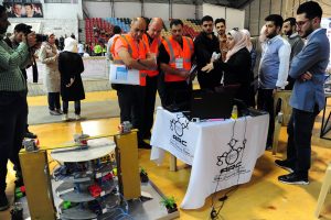 بدوره أشار طالب الهندسة محيي الدين المعلم من جامعة الرشيد الخاصة إلى أنه يشارك مع فريقه بطائرة رباعية المراوح تقوم بإيصال وتقديم المشروبات الساخنة والباردة إلى صاحب الطلب مبينا أنها قادرة على التحول إلى آلة قادرة على الطيران على ارتفاع أربعة أمتار ورصد الأجسام على الأرض وتحديد نوعها “حديد ..ورق.. بلاستيك” وإعطاء الأوامر للآليات الأخرى لتقوم بعملية إزالتها.