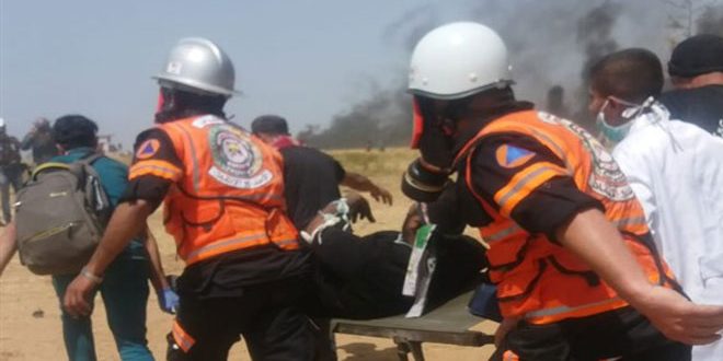 وارتقى عشرة شهداء فلسطينيين بينهم صحفى أمس واصيب 1354 آخرون بينهم 33 بحالة خطيرة جراء إطلاق قوات الاحتلال الإسرائيلي الرصاص الحي بشكل عشوائي لقمع “مسيرات العودة” في شمال وشرق قطاع غزة.