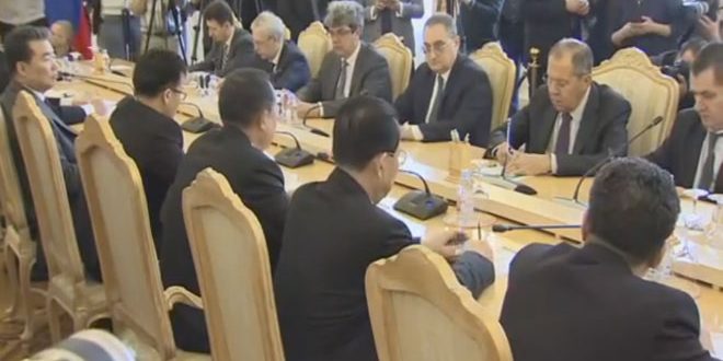 وأوضح لافروف أن لقاء اليوم سيتمحور حول مناقشة الوضع في شبه الجزيرة الكورية وضمان الأمن في شمال شرق آسيا.