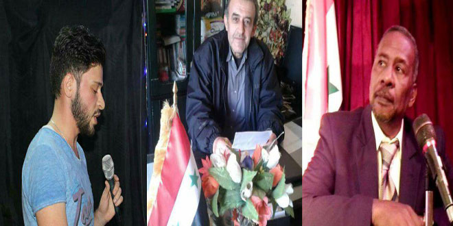 وقرأ الشاعر علي رنو قصائد وجدانية تجسد حب الوطن ورفض تهويد القدس وحملت عناوين “أنا أنت وأنت أنا” “و”لحن الجراح”و”ملاك القدس” التي قال فيها “لكفك افتدي مليون كف.. مرهلة تتنازعك القيادا أعرنا بعض روحك فهي روح..تلقننا مدى الزمن الجهادا”.