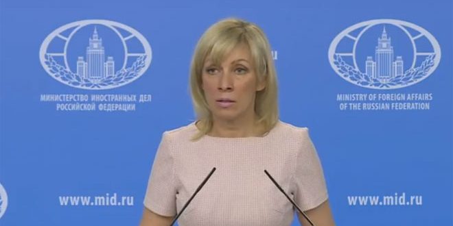 وحول العدوان الإسرائيلى بالصواريخ على مطار التيفور بريف حمص الشرقى فى التاسع من الشهر الجارى قالت زاخاروفا: “من اللافت أن الهجوم على المطار حيث يتمركز الطيران السوري الذي شارك مباشرة في العملية ضد تنظيم “داعش” شرق سورية تزامن مع تنامي نشاط بقايا الإرهابيين هناك”.