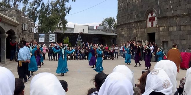 احتضنت كنيسة جاور جيوس للروم الأرثوذكس في مدينة إزرع معرضا تراثيا وفقرات غنائية شعبية بمناسبة الاحتفال برأس السنة السورية المصادف للأول من نيسان.